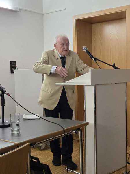 100 Jahre, ein bewegtes Leben. Der Hockenheimer Karl Peter, am 7. März 100 Jahre alt geworden hielt einen bewegten und gleichzeitig mit vielen Anekdoten geschmückten Vortrag über sein Leben in der Hockenheimer Zehntscheune. Knapp 80 Zuhörer folgten der Einladung der Volkshochschule Hockenheim und des Freundeskreises Hockenheim-Commercy.