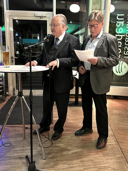 Er begrüßte die Mitglieder welche früher oder aktuell in ihren jeweiligen Vereinen für die Verbindungen nach Commercy zuständig waren oder sind. So wie der in früheren Jahren unermüdliche Karl-Heinz Schwab vom Angelsportverein, oder aktuell der Vizepräsident Fred Hoffmann der für den Schützenverein die Verbindungen nach Commercy herstellt und am Jubiläumsabend als hervorragender Dolmetscher fungierte.