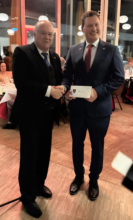 Vor der Vorspeise des ausgezeichneten französischen Buffet trat der Hauptredner Bürgermeister Matthias Beck ans Mikrofon, welcher mit seiner Partnerin Fitore Kucki anwessend war und auch dadurch glänzte, das er seine Rede in Deutsch und perfektem Französisch hielt.
