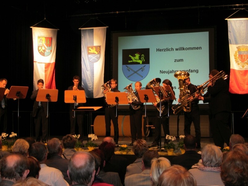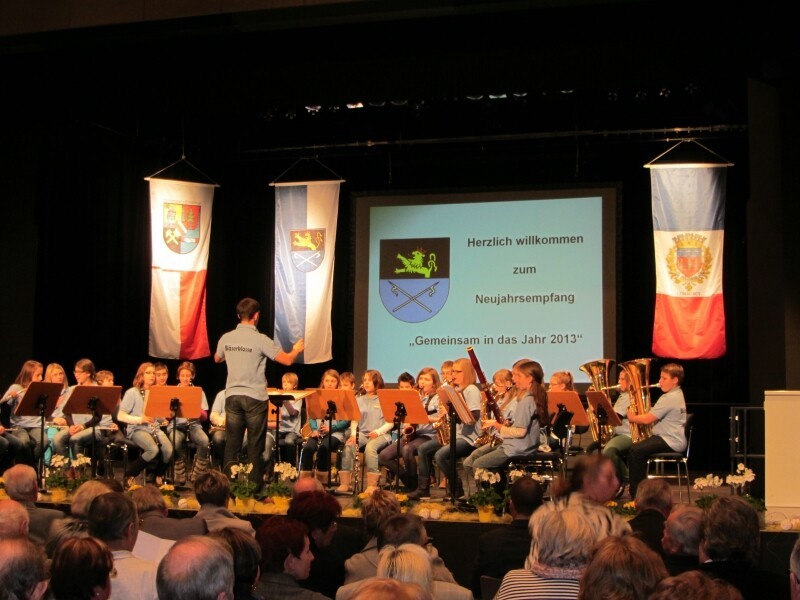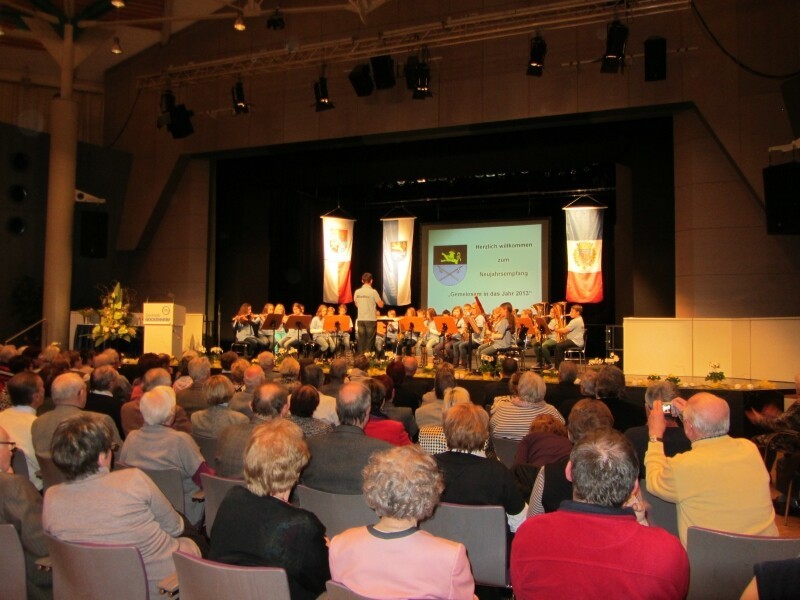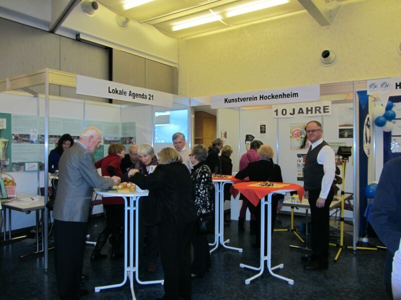 Stand des Freundeskreises Hockenheim-Commercy beim Neujahrsempfang in der Stadthalle Hockenheim und weitere Impressionen